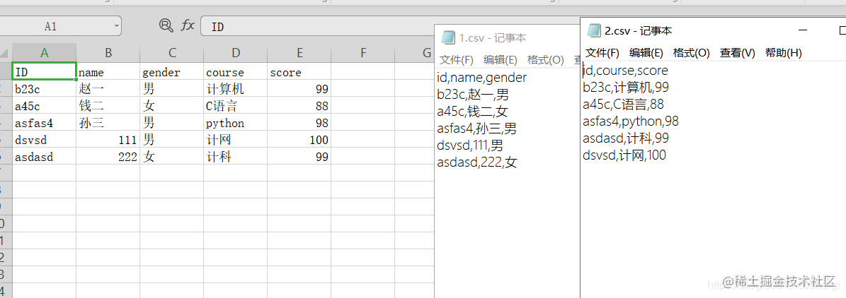 通常我们处理文件都是用python+pandas,确实很香。但是今天突然有人找我用go写一个合并两个csv文件的,需要将两个csv按id进行合并,大致如下图